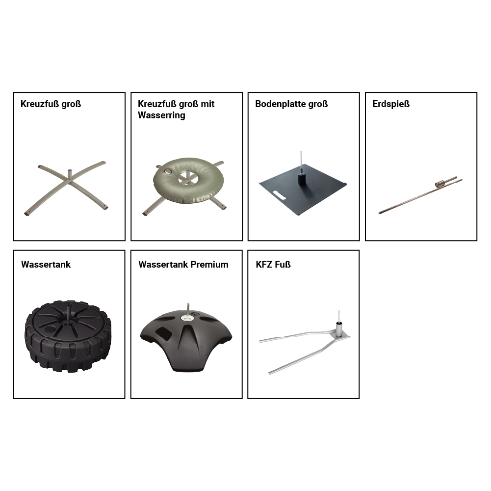 Dank der verschiedenen Standfüße, die für die Fahne erhältlich sind, kann der Standfuß an die jeweilige Größe, den Standort und den Untergrund angepasst werden, damit die Fahne überall stabil und sicher steht - egal ob auf Asphalt, Rasen, Sand oder Schnee. Soll die Fahne auf dem Boden stehen, so kann zwischen Kreuzfüßen, Bodenplatten, Wassertank, KFZ-Fuß oder ein Betonfuß gewählt werden, soll sie im Boden verankert werden, empfiehlt sich die Verwendung eines Erdspießes. Bei Kreuzfuß und Bodenplatte kann zur zusätzlichen Beschwerung ein Wasserring verwendet werden, um die optimale Standfestigkeit zu gewährleisten. Bei guter Pflege kann die Fahne eine Lebensdauer von sechs bis acht Monaten erreichen.