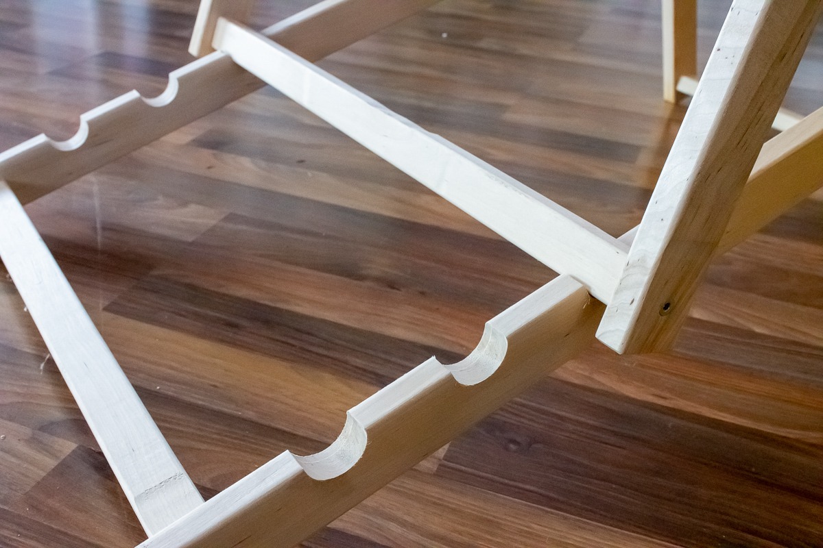 - Gestell: naturbelassenes Holz